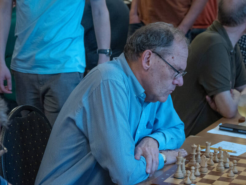 Zo speelde Sertaç Oruç deze ronde aan bord 5 met zwart tegen Hans Klein. Beiden bouwden hun stelling rustig op. Het leek wel of ze verdedigend speelden. En van lieverlee werden de stukken afgeruild. Op het laatst hadden ze allebei alleen nog maar een koning en 6 pionnen. Ja en Hans had het natuurlijk wel zo uitgekiend, dat zijn Koning na de laatste ruil van de stukken in het centrum zou staan. En als je dan pionnen verliest, Sertaç, dan red je het niet meer. Hans hoort nu dus ook bij de negen personen met 3½ punt!